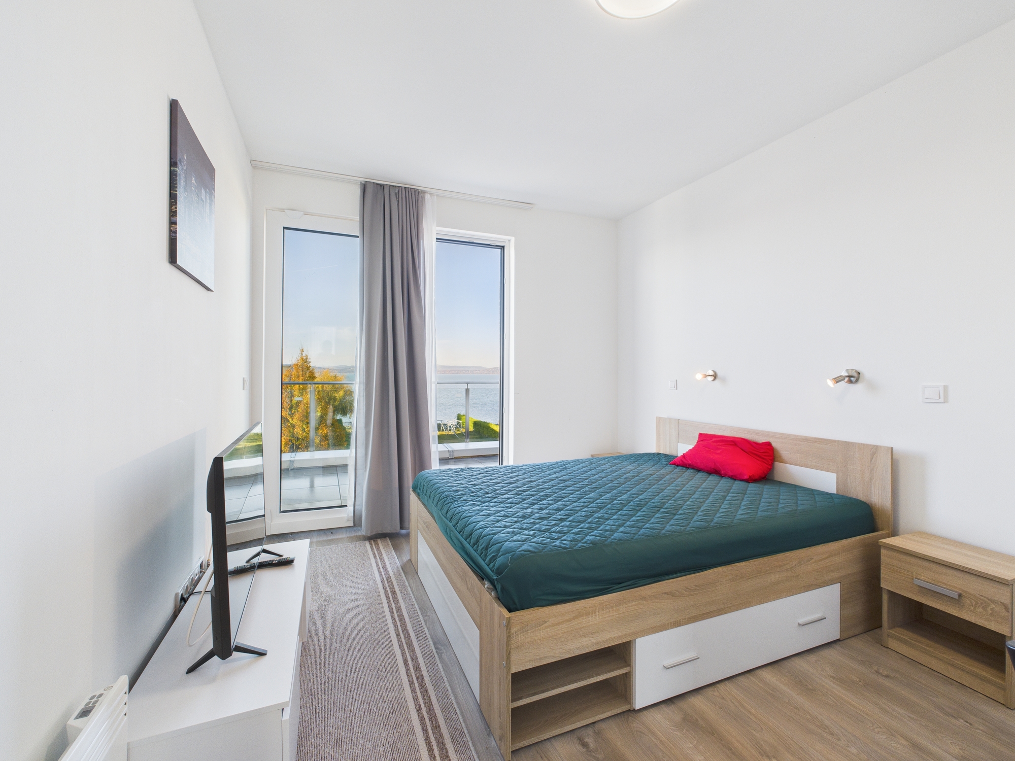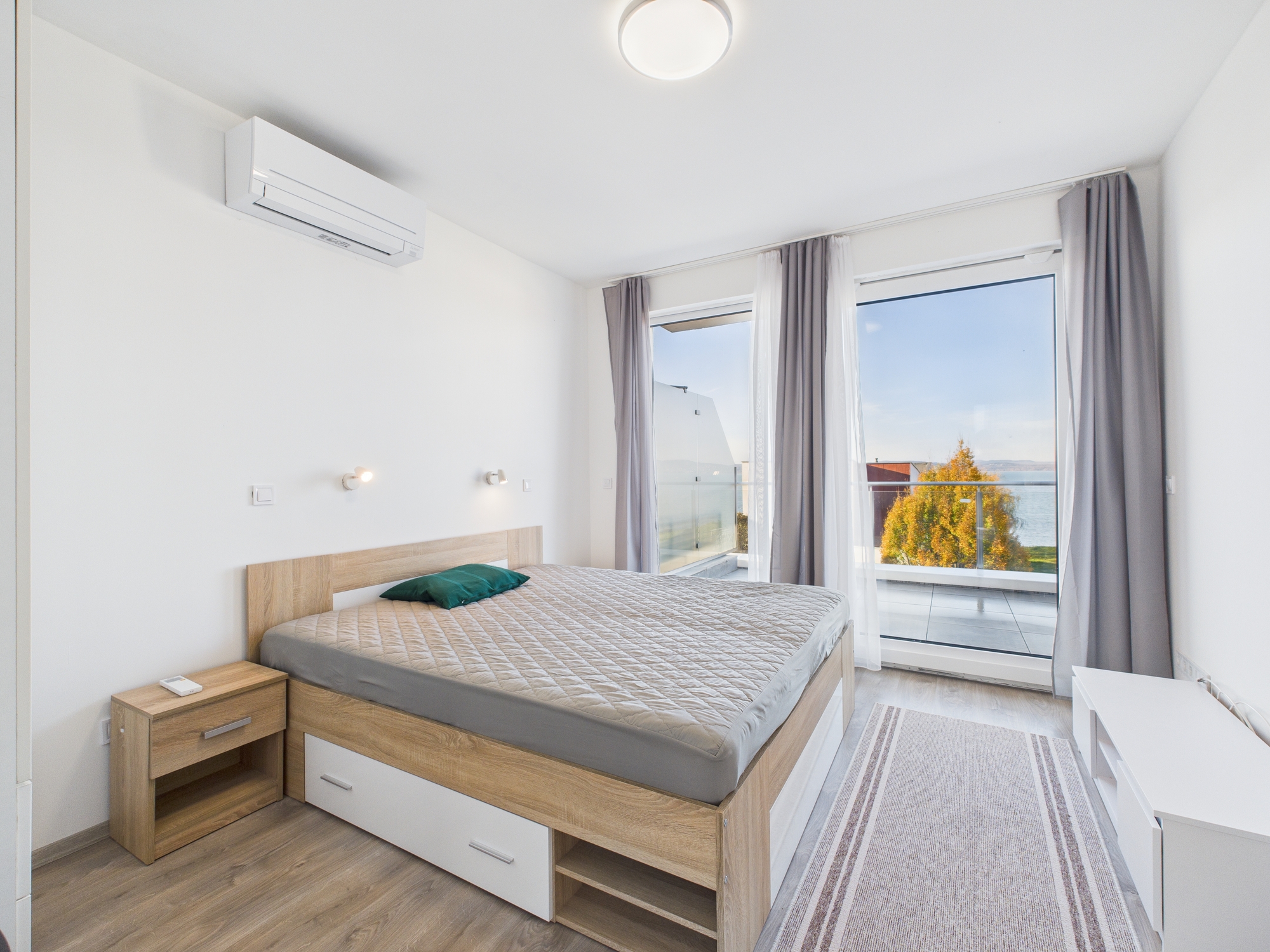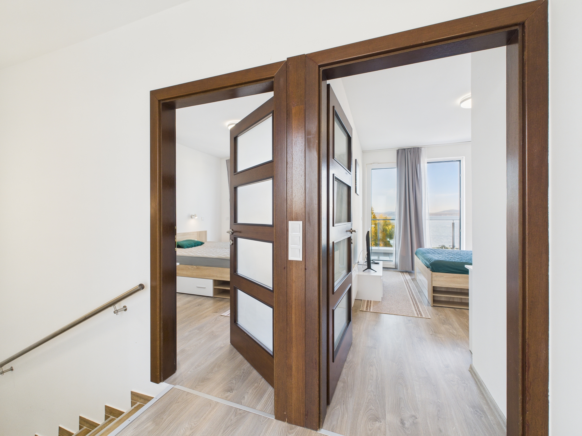* Két panorámás hálószoba az emeleten – mindkettőből gyönyörű a kilátás a Balatonra.