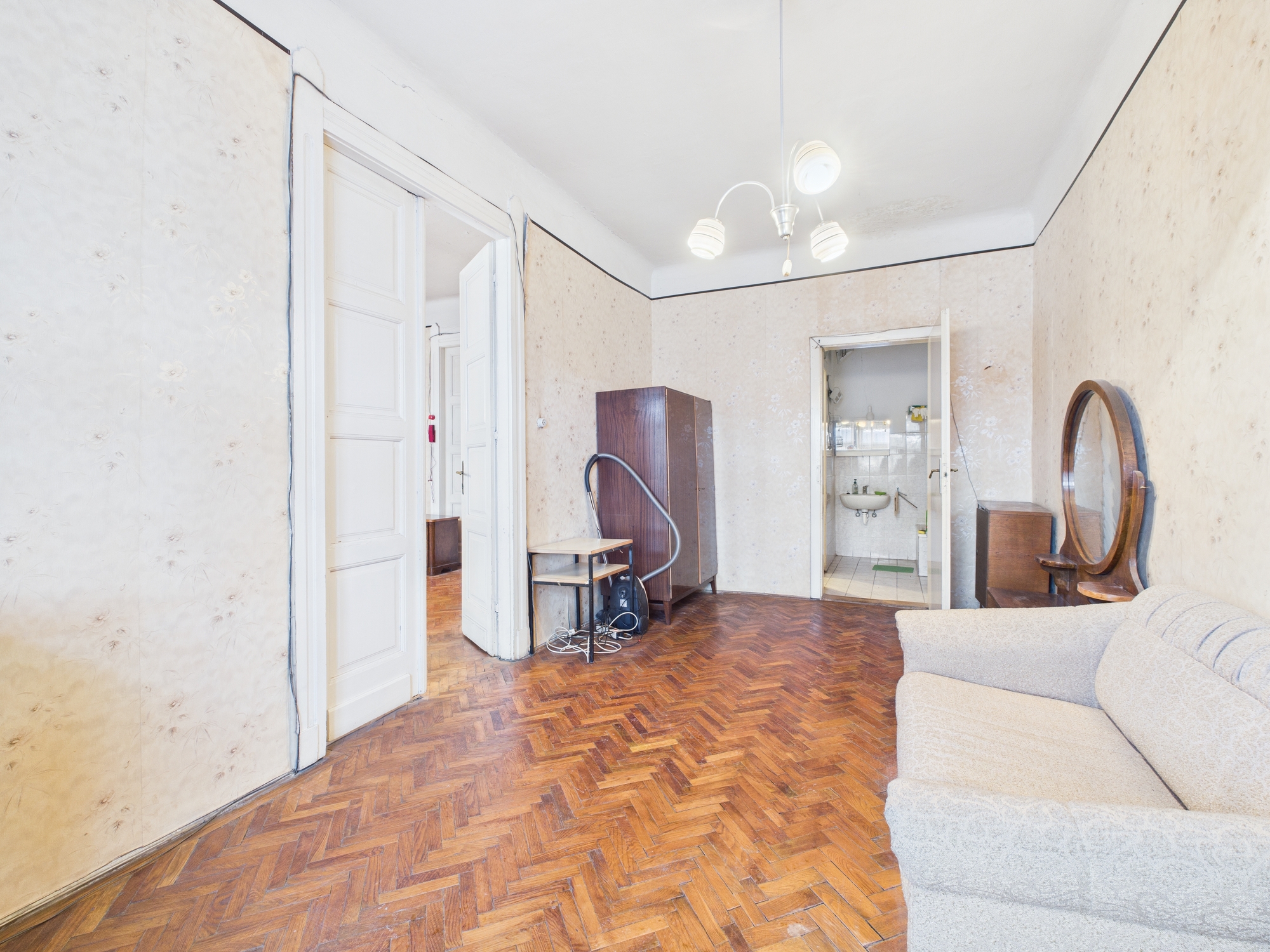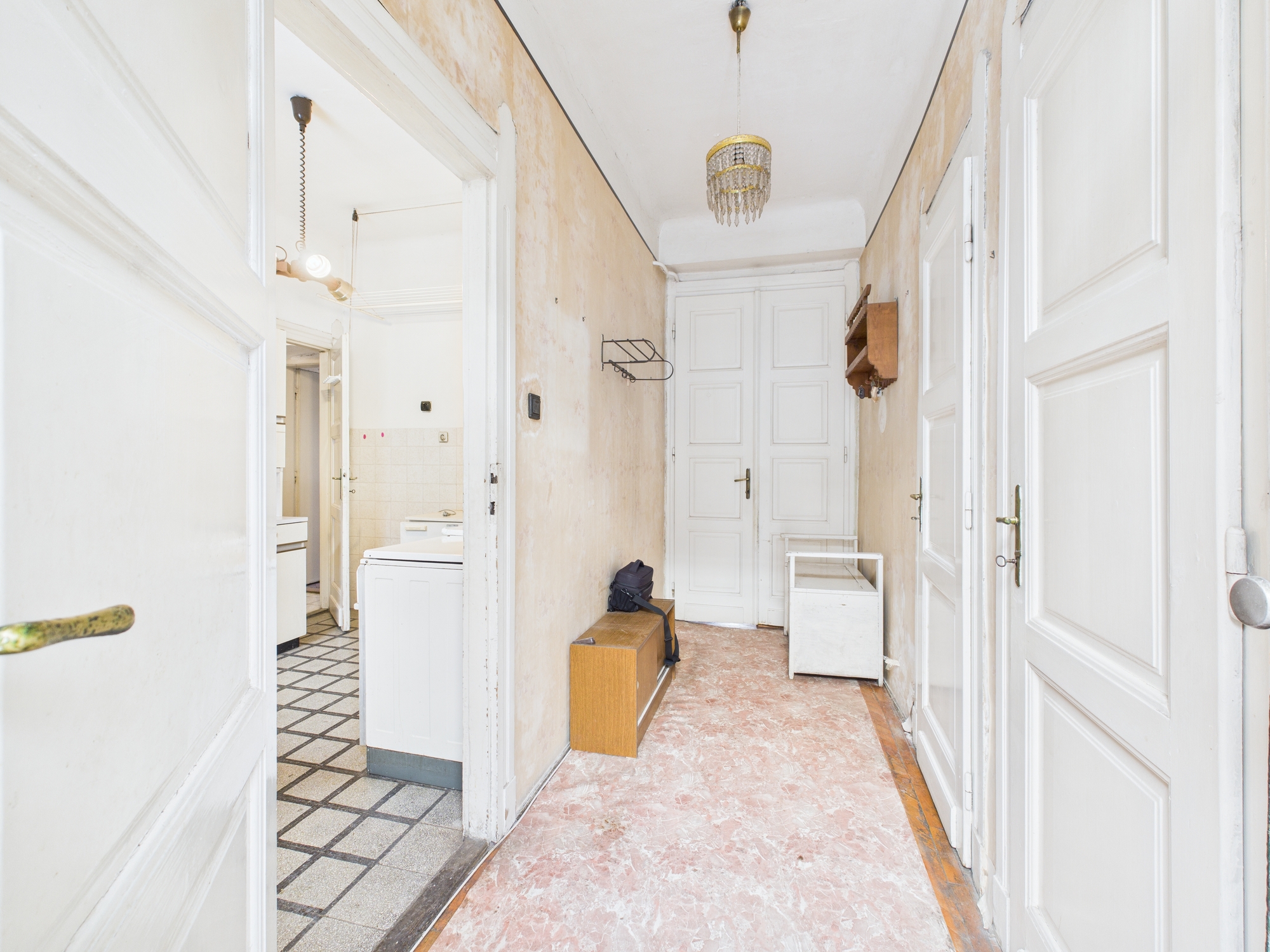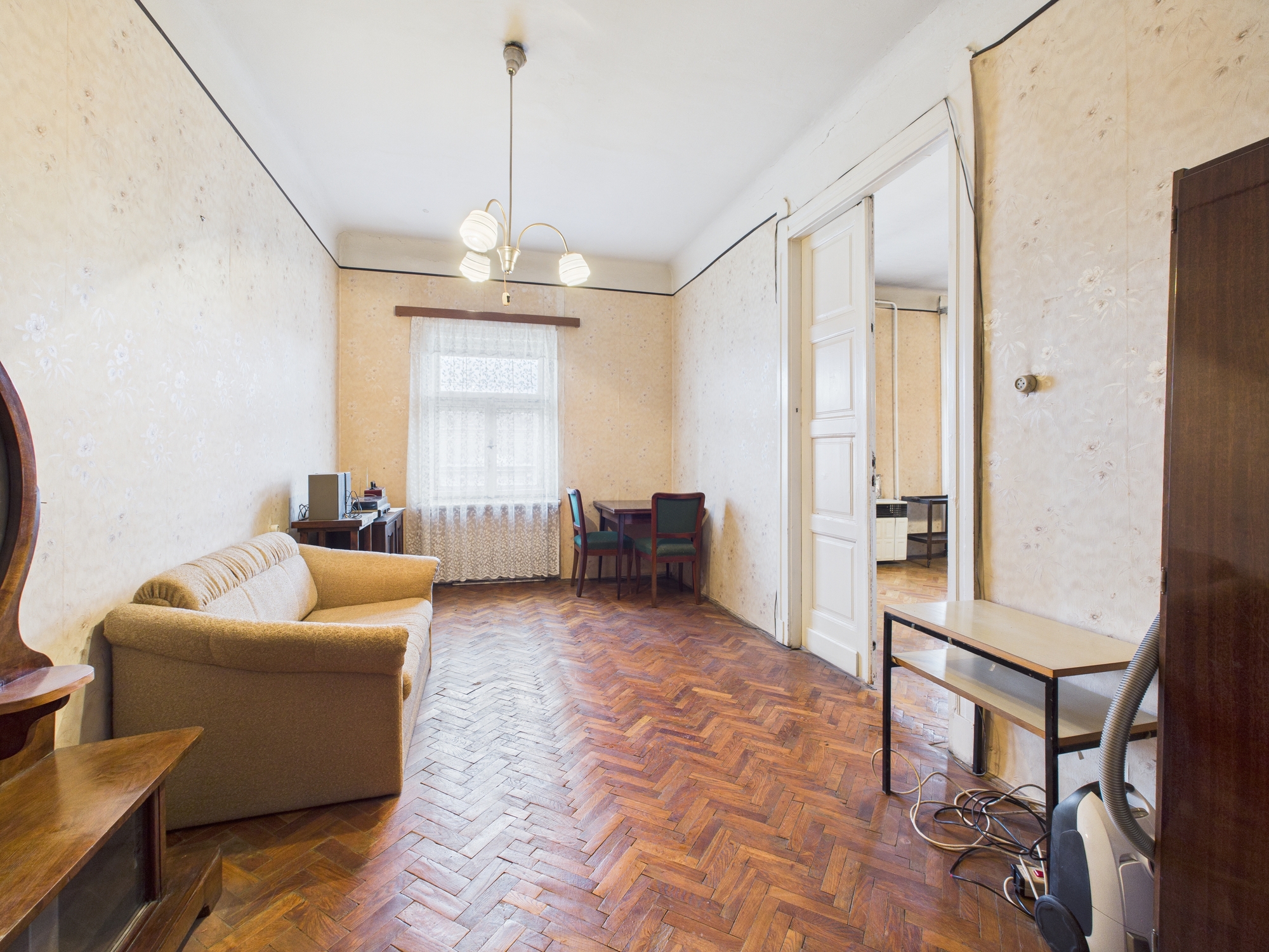 A jelenlegi elrendezés tágas nappaliból, hálószobából, közlekedőből, kamrából, külön WC-ből és fürdőszobából áll, valamint egy különleges, egykori cselédszobából, amely számos átalakítási lehetőséget rejt. A lakás teljes körű felújítást igényel, ugyanakkor éppen ez adja meg a szabadságot egy világos, modern és funkcionális élettér kialakítására a belváros szívében.