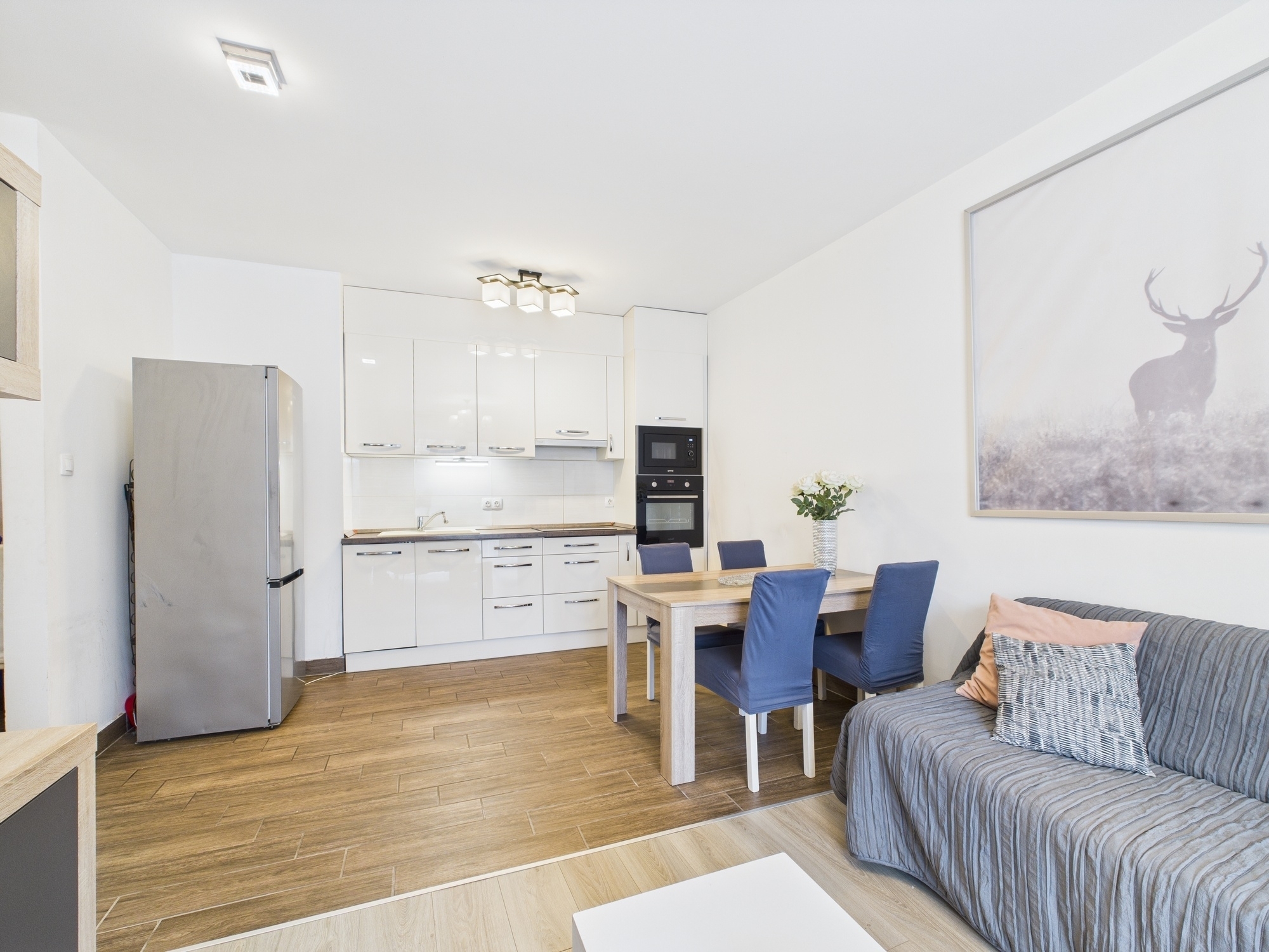A lakás a 2018-ban épült, modern társasház 2. emeletén található. Belépve egy világos, amerikai konyhás nappalifogad, amely a mindennapok központja lehet – ahol együtt a család, de mégis mindenkinek jut saját tér. A nappaliból egy 3 m²-es, hangulatos erkélyre is kiléphetünk, amely ideális hely egy reggeli kávéhoz vagy egy csendes esti kikapcsolódáshoz.