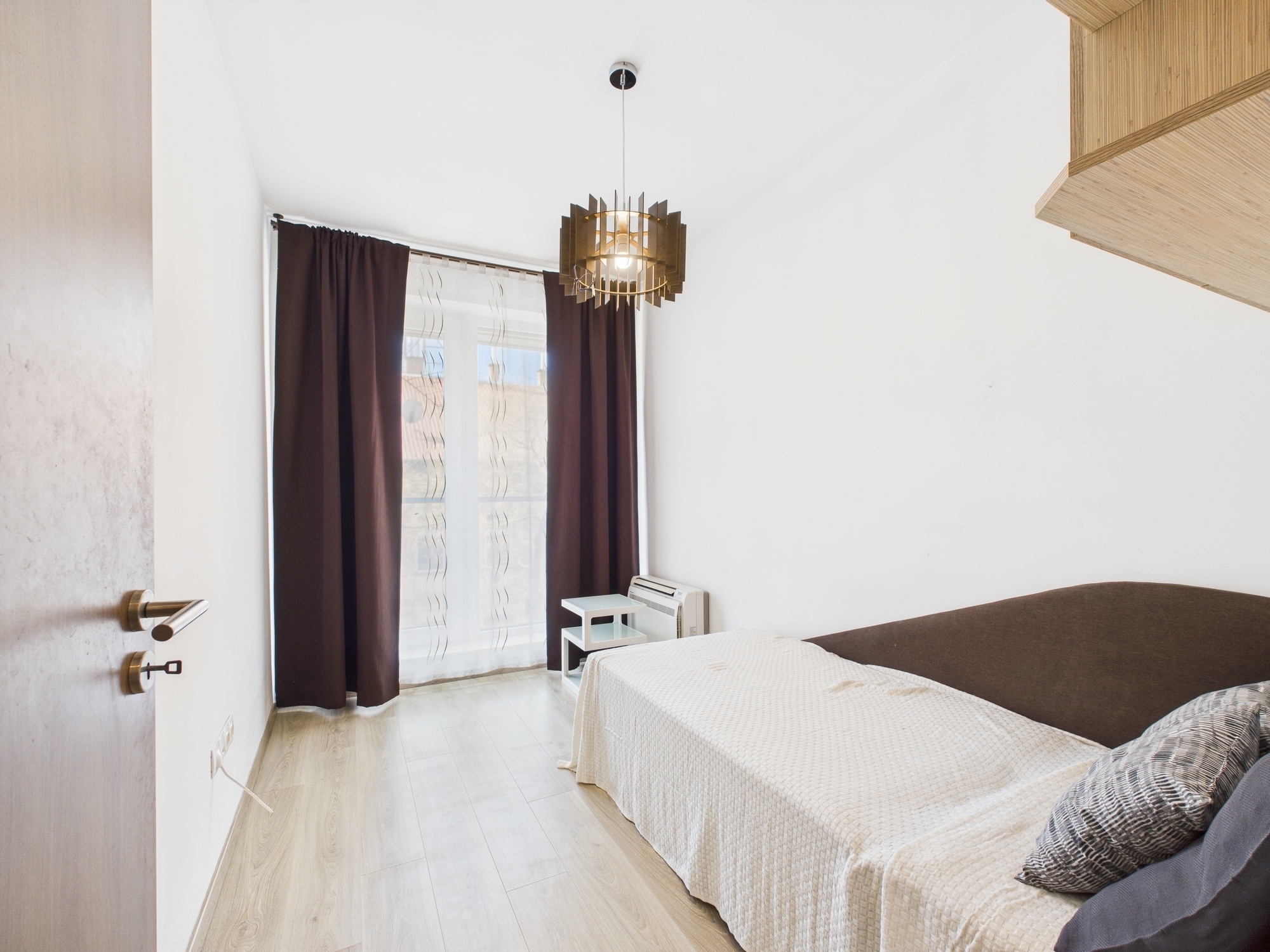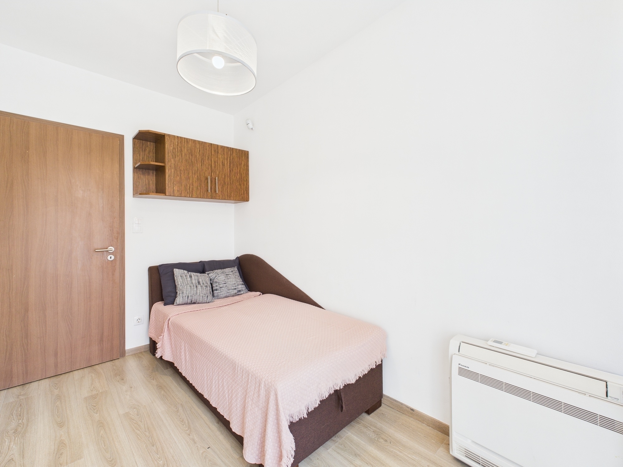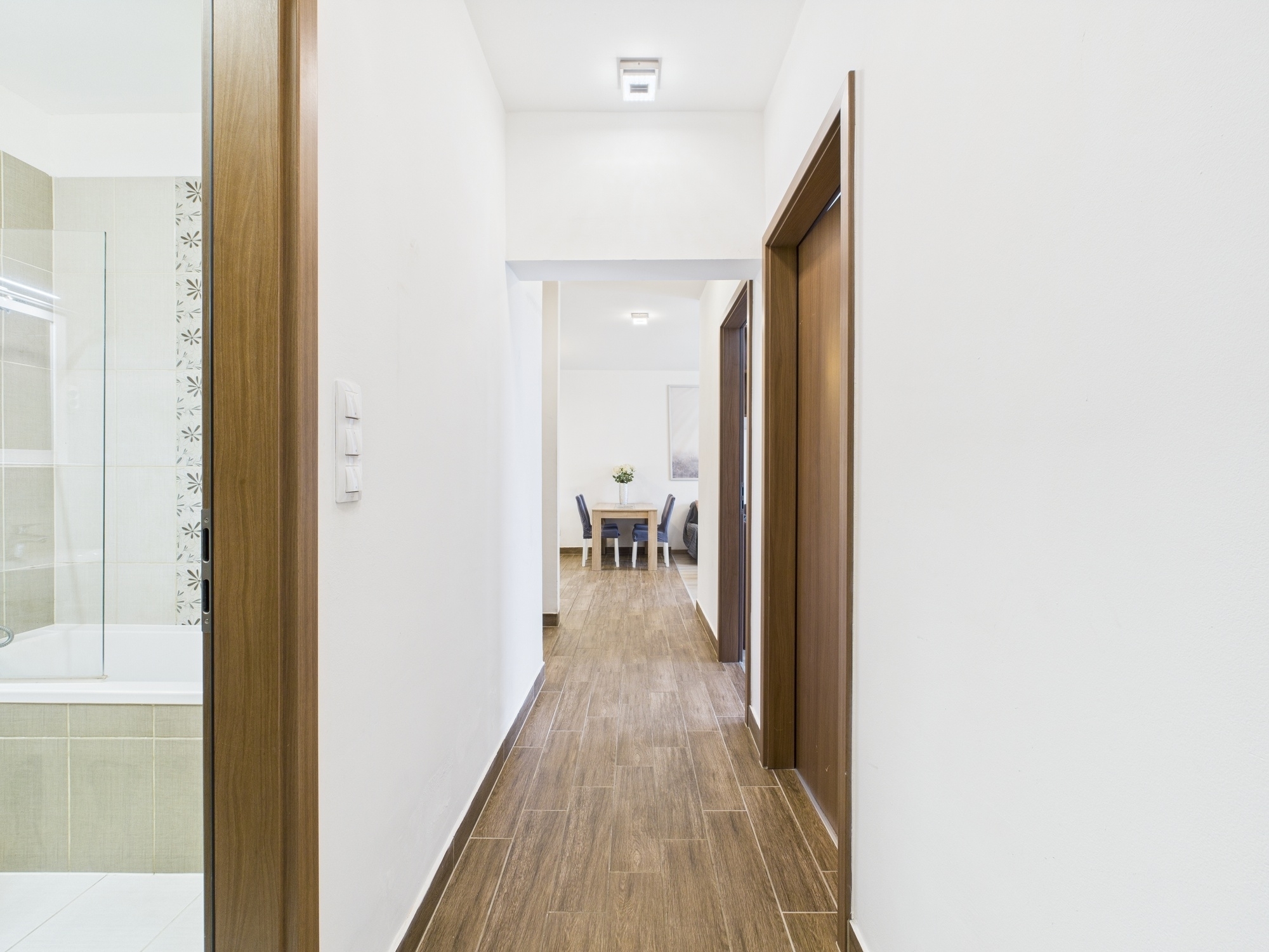 Három külön nyíló hálószobája révén a lakás egy négytagú család számára is kényelmes életteret biztosít, a két fürdőszoba pedig a reggeli készülődés nyugalmát szolgálja. Az egyik fürdő a szülői hálóból nyílik, megteremtve ezzel a valódi intimitást. Bár a lakás mérete kompakt, minden megtalálható benne, ami egy kényelmes, modern életvitelhez szükséges. A praktikus térkihasználásnak köszönhetően a lakás teljes értékű otthonként funkcionál.