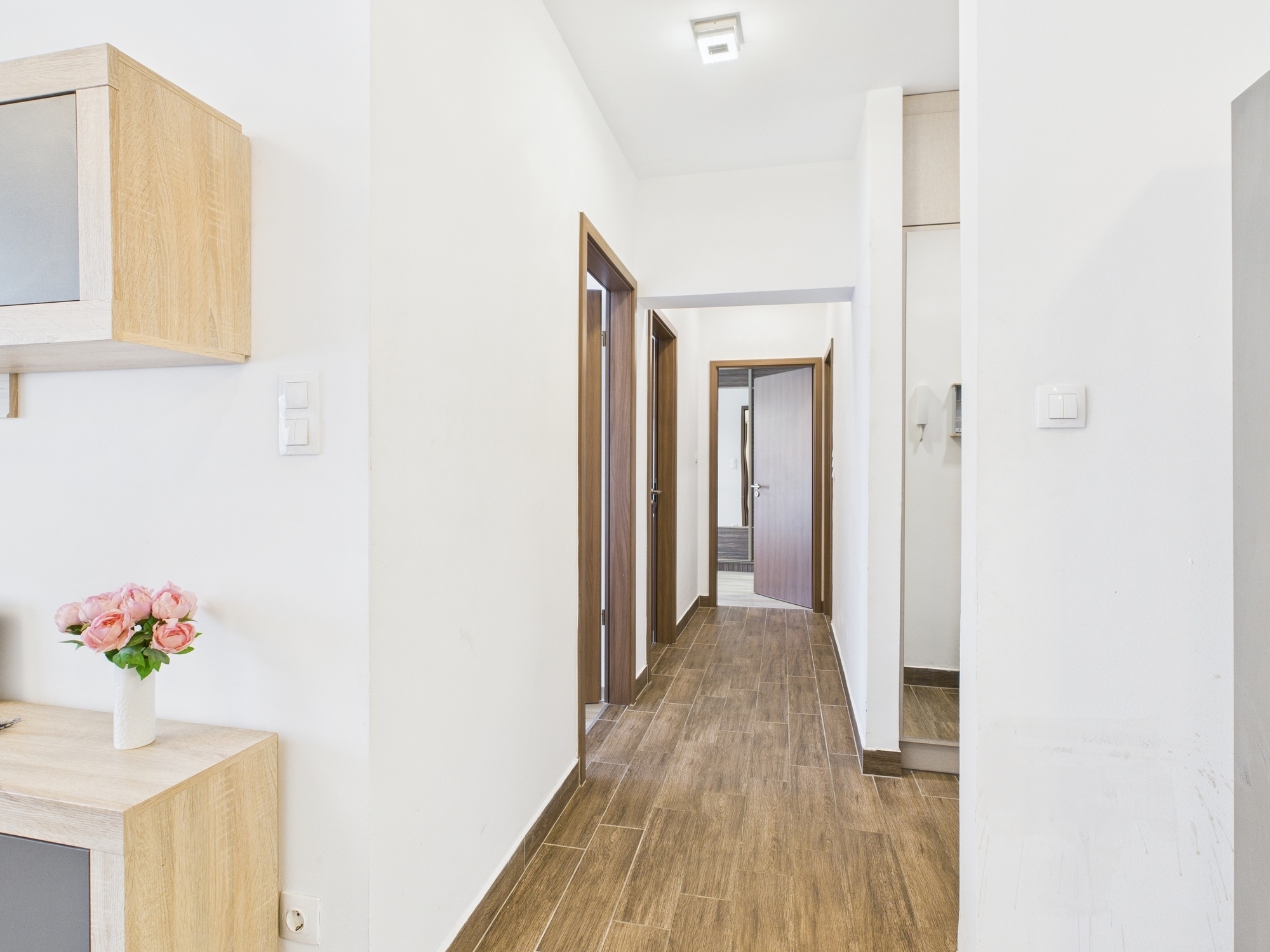 Ez a nettó 70 m²-es lakás tökéletes példája annak, hogyan lehet egy otthont úgy megtervezni, hogy minden négyzetcentiméter a komfortos életet szolgálja. A lakás tulajdonosai saját maguk alakították ki az enteriőrt, így a precíz tervezésnek köszönhetően minden szükséges funkció helyet kapott, kompromisszumok nélkül.