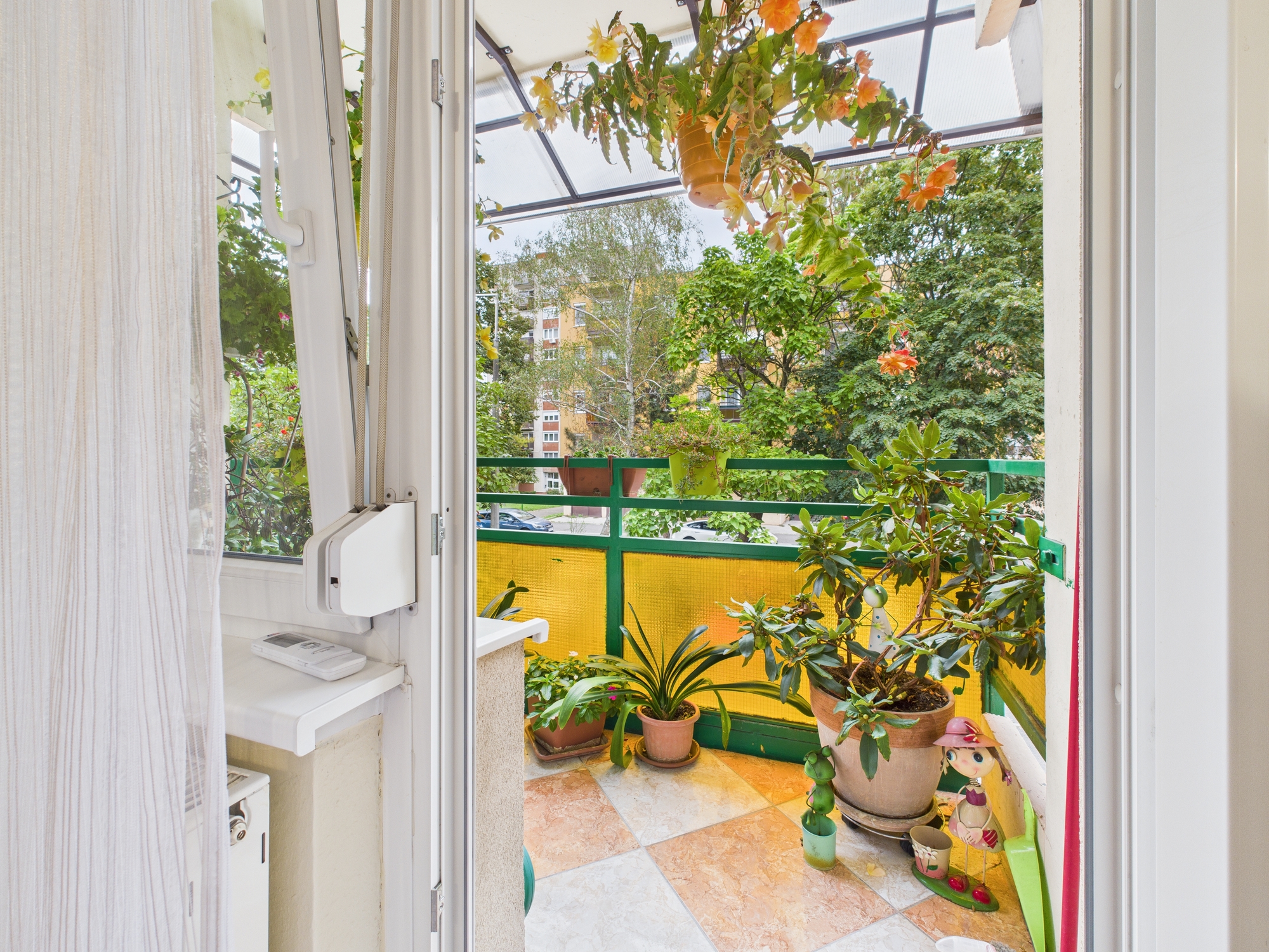 3 m²-es erkély, csendes utcára és parkolóra néző kilátással.