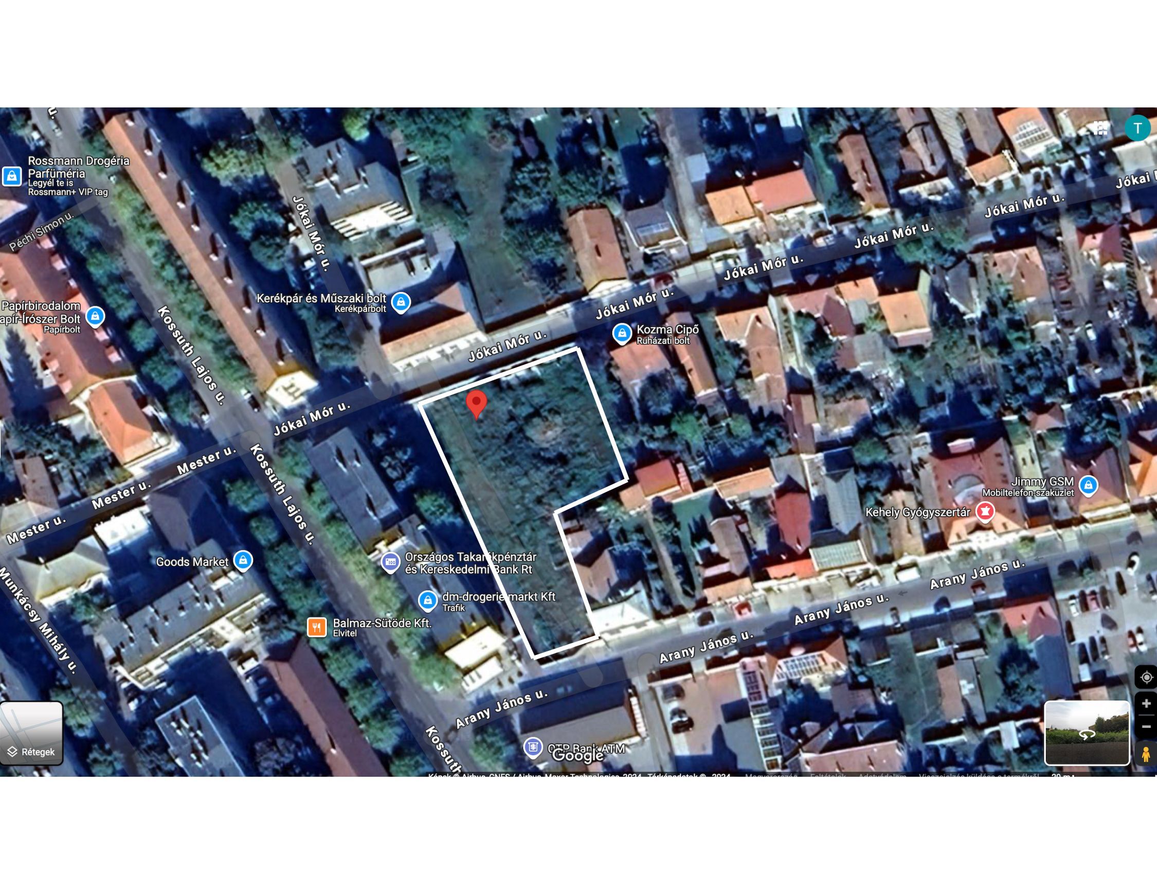 A telek Hajdúböszörmény belvárosában, a Jókai Mór utca 5-7. szám alatt található, kiemelkedő lokációval a város központi fejlesztési területén. A régió dinamikus fejlődése és a debreceni gazdasági kapcsolódás miatt kiváló választás lakó- és üzleti célú beruházásokhoz. Az autópálya közelsége Budapest és a határmenti területek könnyű elérhetőségét is biztosítja, tovább növelve a terület vonzerejét.