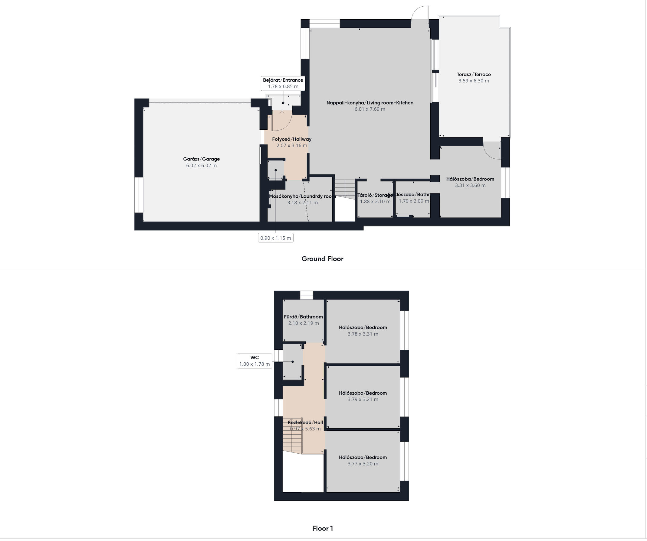 * Az emeleten három külön nyíló hálószoba kapott helyet, valamint egy tágas fürdőszoba és külön mellékhelyiség