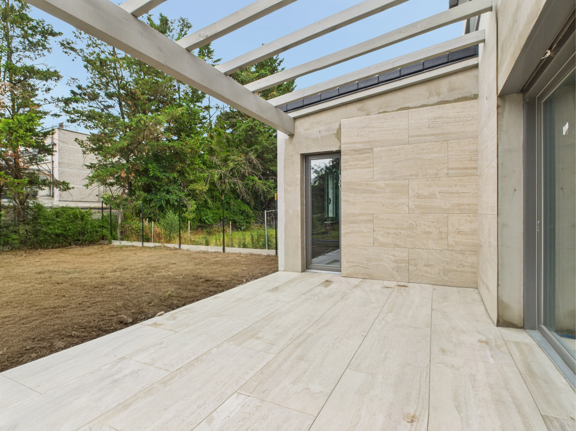 * Innen közvetlen kijárat nyílik a fedett, burkolt teraszra – bent és kint természetes átmenettel